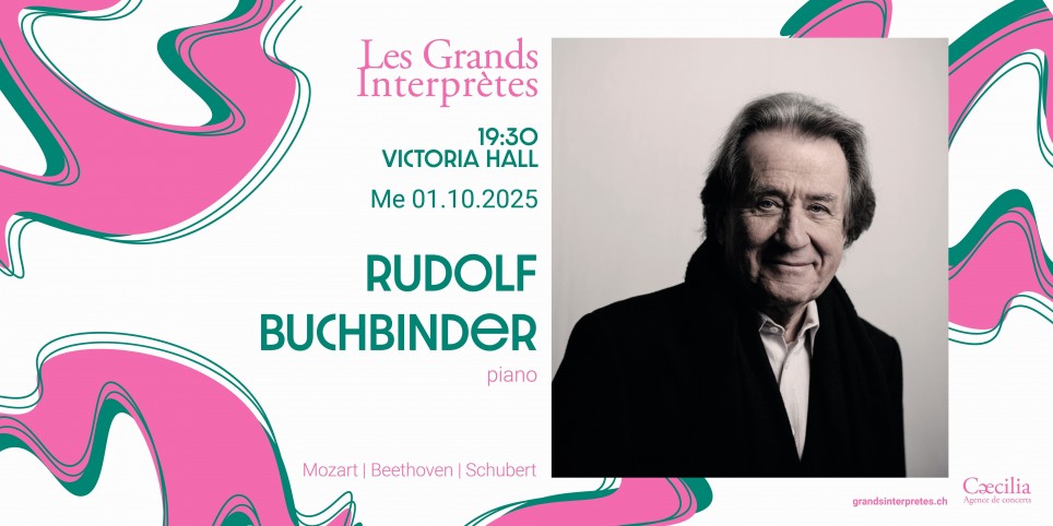 Rudolf Buchbinder, piano Programme:Wolfgang Amadeus Mozart - Variations sur le thème « Ah, vous dirai-je, Maman ! », K 265Ludwig van Beethoven - Sonate pour piano no 23 en fa mineur, op. 57, « Appassionata »Franz Schubert - Sonate pour piano en si bémol majeur, op. posth., D 960 Pour l'achat de places PMR, merci de prendre contact avec l'Agence Caecilia: 022 322 22 40
